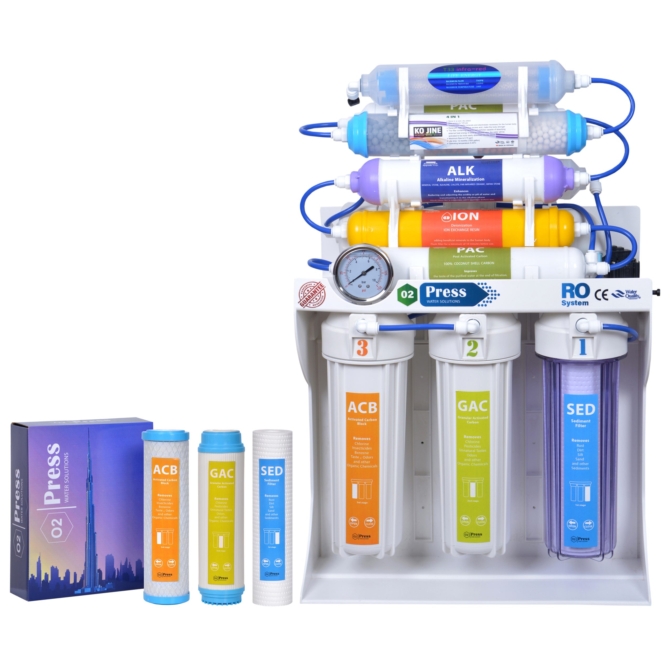 دستگاه تصفیه آب O2 press، در 11 مرحله آب را کاملا تصفیه می کند.